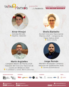 La jornada culminará con una cena degustación de gastronomía en miniatura, donde los asistentes podrán disfrutar de los pinchos elaborados durante el showcooking de la formación. Una experiencia que une aprendizaje teórico y práctica culinaria, diseñada para que los participantes apliquen de inmediato las técnicas y propuestas abordadas durante el día.